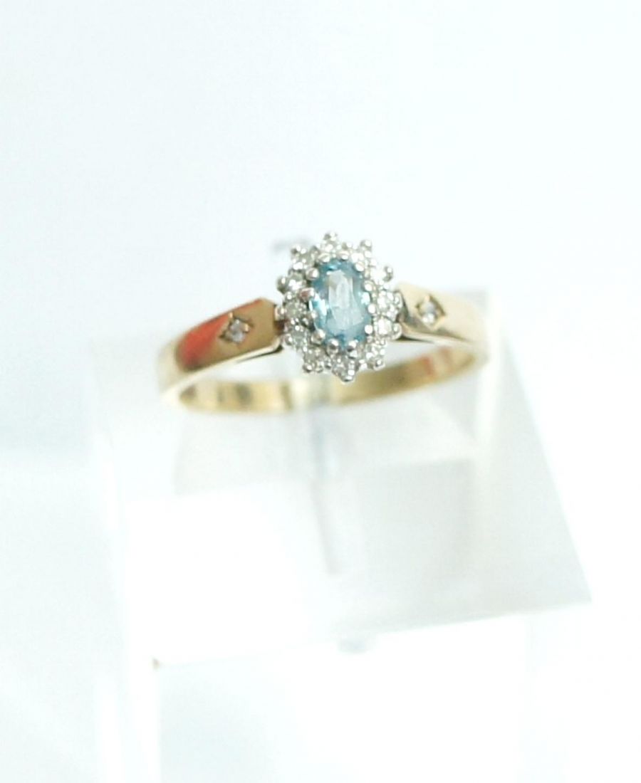 Englischer Blautopas Diamand Damenring aus 375/000 Gelbgold A183