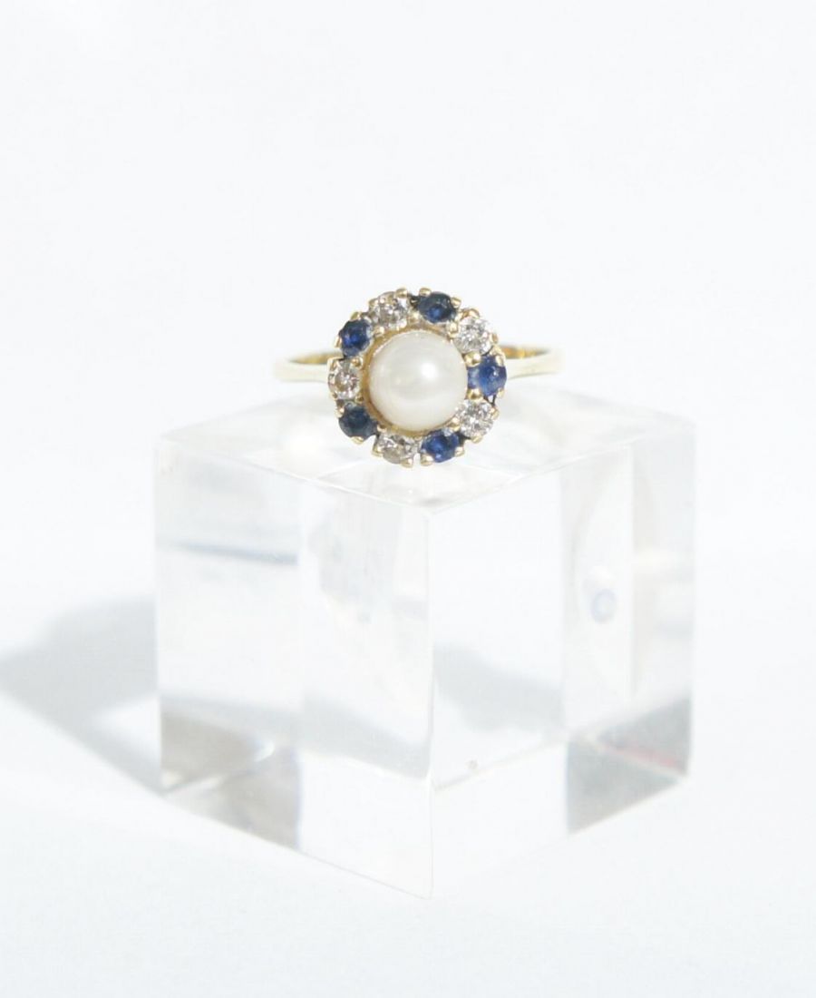 585/000 Zuchtperlring mit Brillanten und Safiren A335