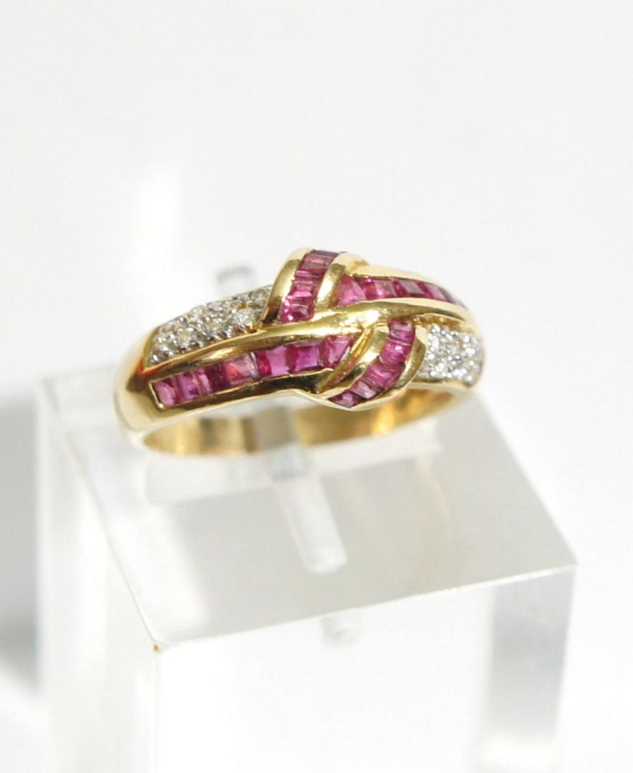 Edler Rubin Brillant Damenring in 750/000 Gelbgold A1860