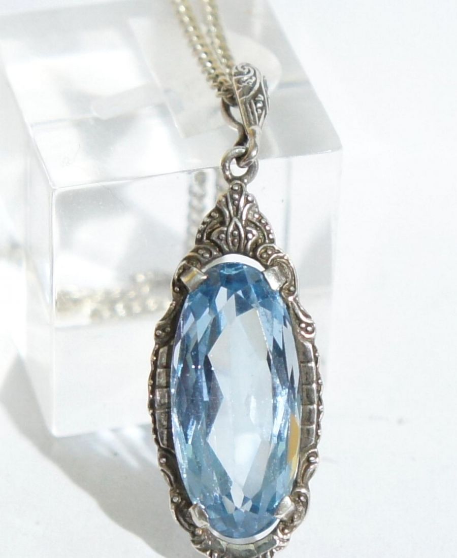 Antiker Anhänger aus 835/000 Silber mit blauem Schmuckstein A1904