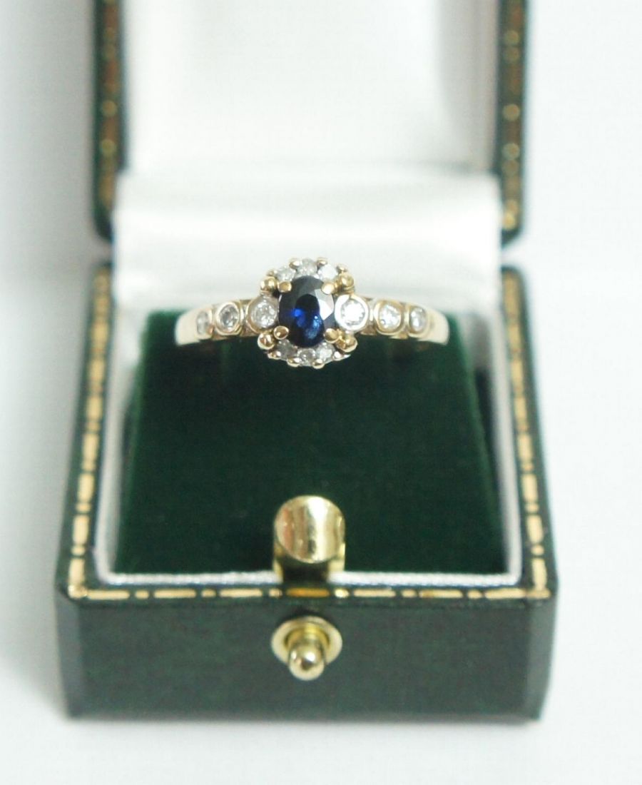 Traumhafter englischer Safirring in 375/000 Gold Brillanten A44