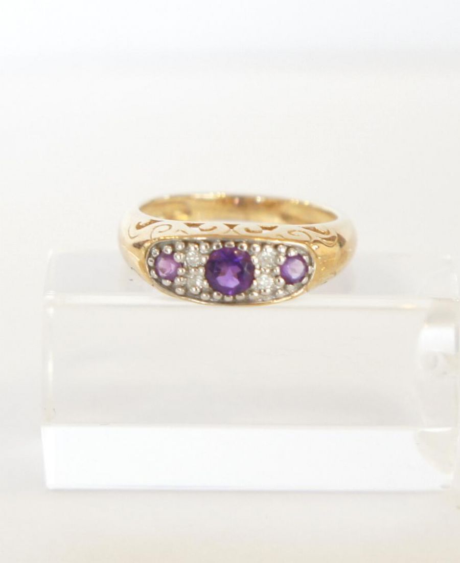 Englischer Amethyst Diamantring aus 375//000 Gold  A28