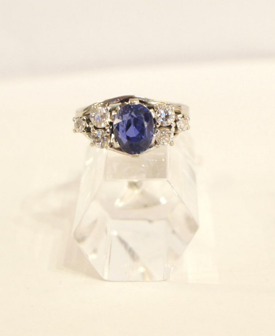 Der Safir hat ca. 1,25ct ( 8 x 6mm) und ist oval-facettiert.
