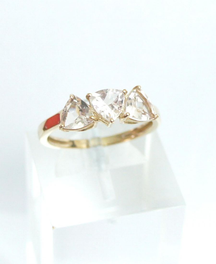Traumhafter, schlichter Damenring mit 3 schönen Morganiten aus 375/000) Gelbgold gearbeitet