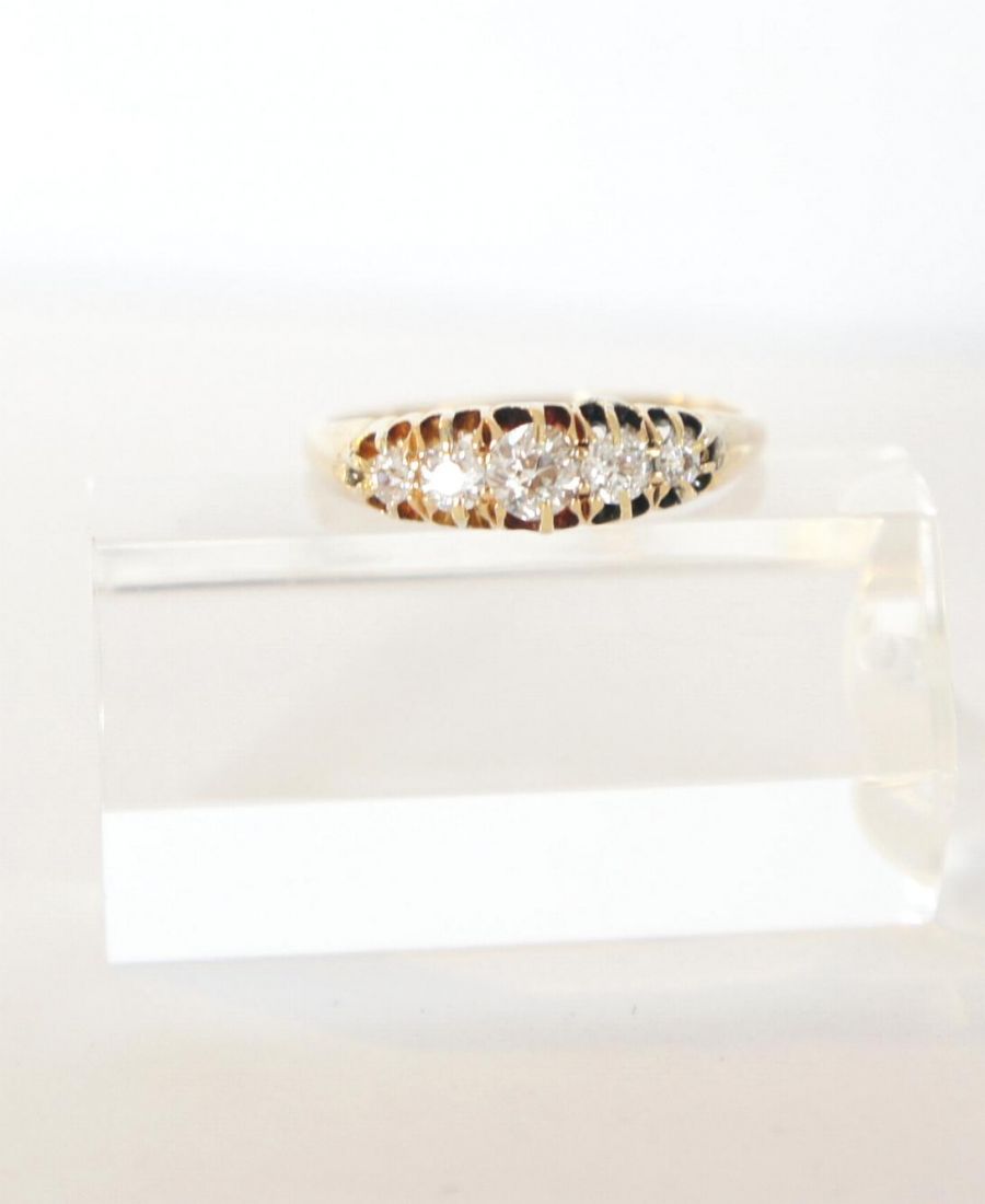 Besetzt ist er mit 5 schönen Altschliff Diamanten mit einem Caratgewicht von ca. 0,50ct