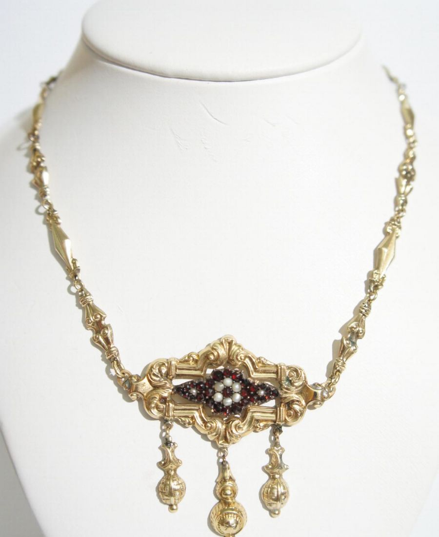 Traumhaft schönes antikes Granat Collier aus Gelbgold , Biederme