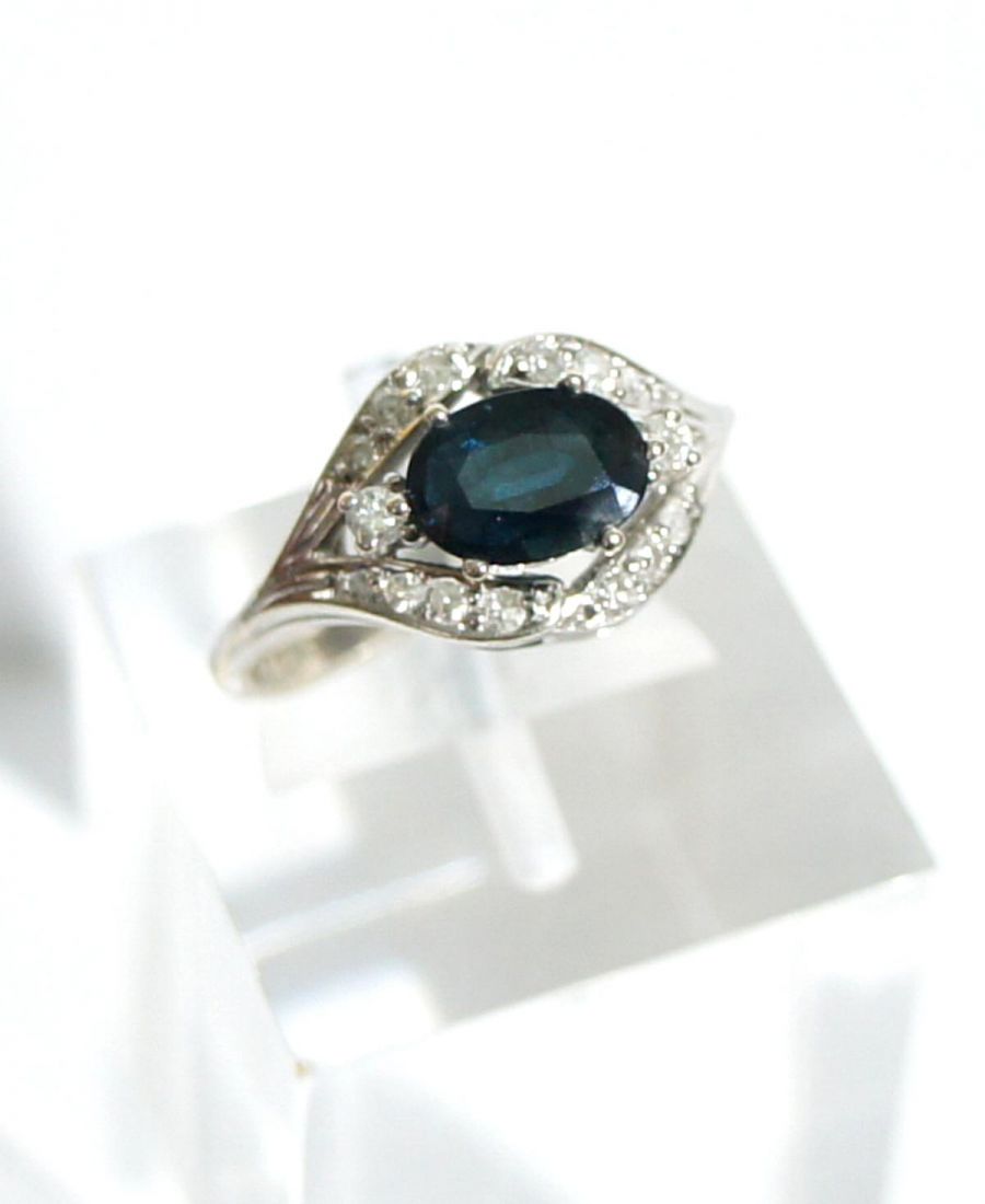 Damenring in 585/000 Weissgold mit Safir und Diamanten A1036