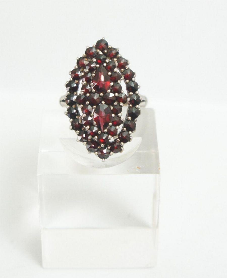 Antiker Damenring um 1900 aus 800/000 Silber und böhmischen Granaten gearbeitet.