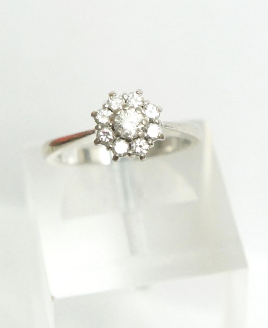 Der zentrale Brillant hat ca.0,15ct, die 8 um ihn herum gefasten Brillanten haben ca.0,24