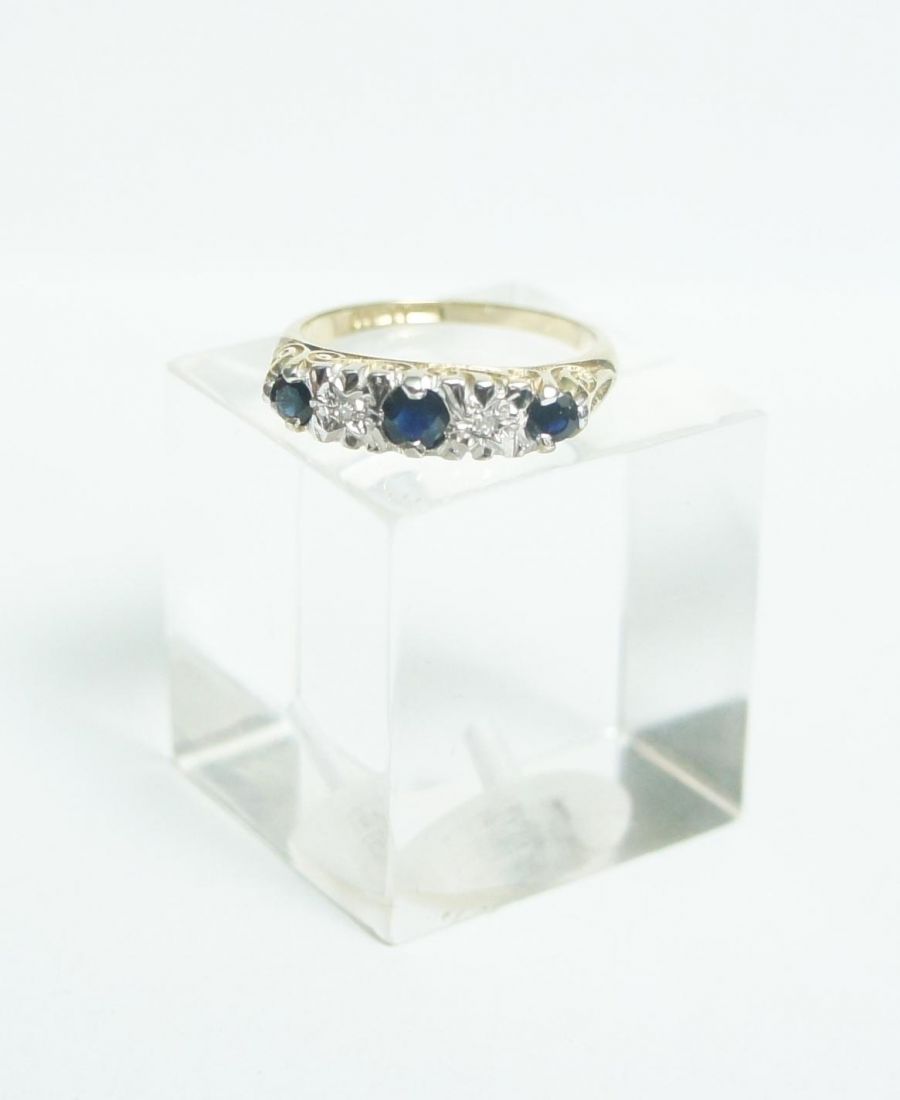 Englischer Damenring in 375/000 Gelbgold mit Safir Diamant A1259