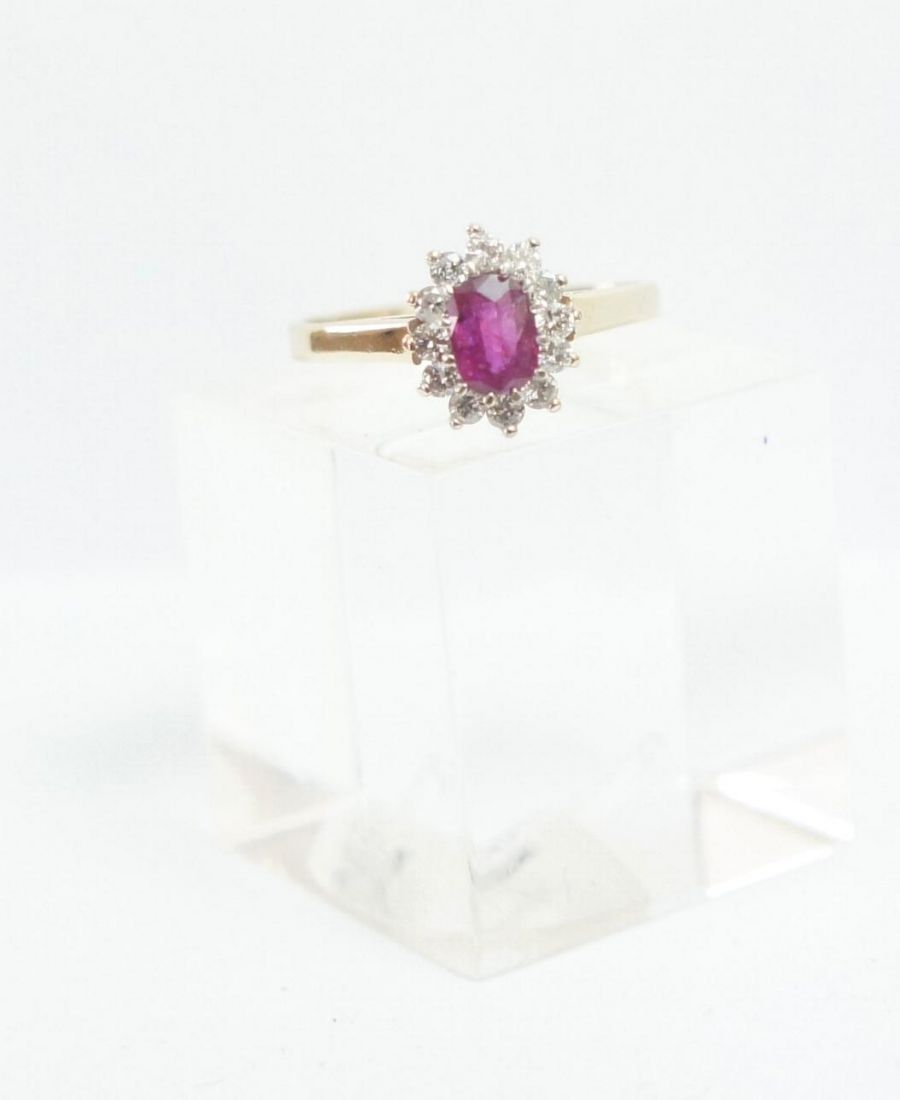 Englischer Rubin Ring mit 0,25ct Brillanten 375/000 Gelbgold A13