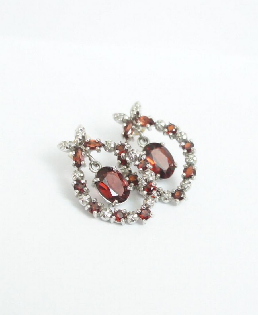 Vintage Granat Diamant Ohrstecker in 375//000 Weissgold A1400