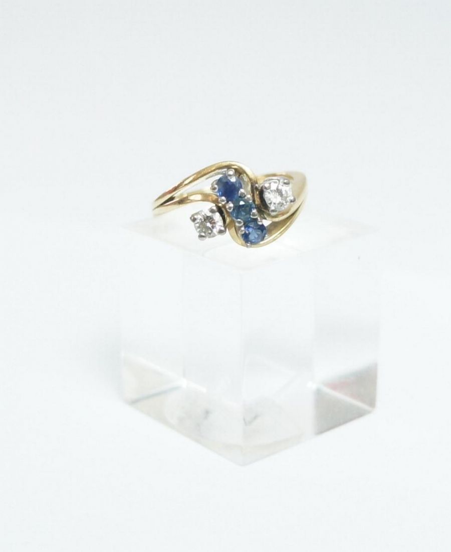 Eleganter vintage Safir-Brillantring in 750/000 Gelbgold A1428
