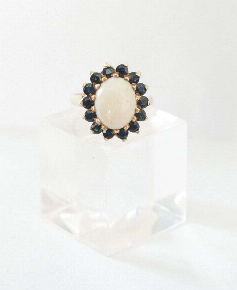 Englischer Opal Damenring in 375/000 Gelbgold mit Safiren A1432