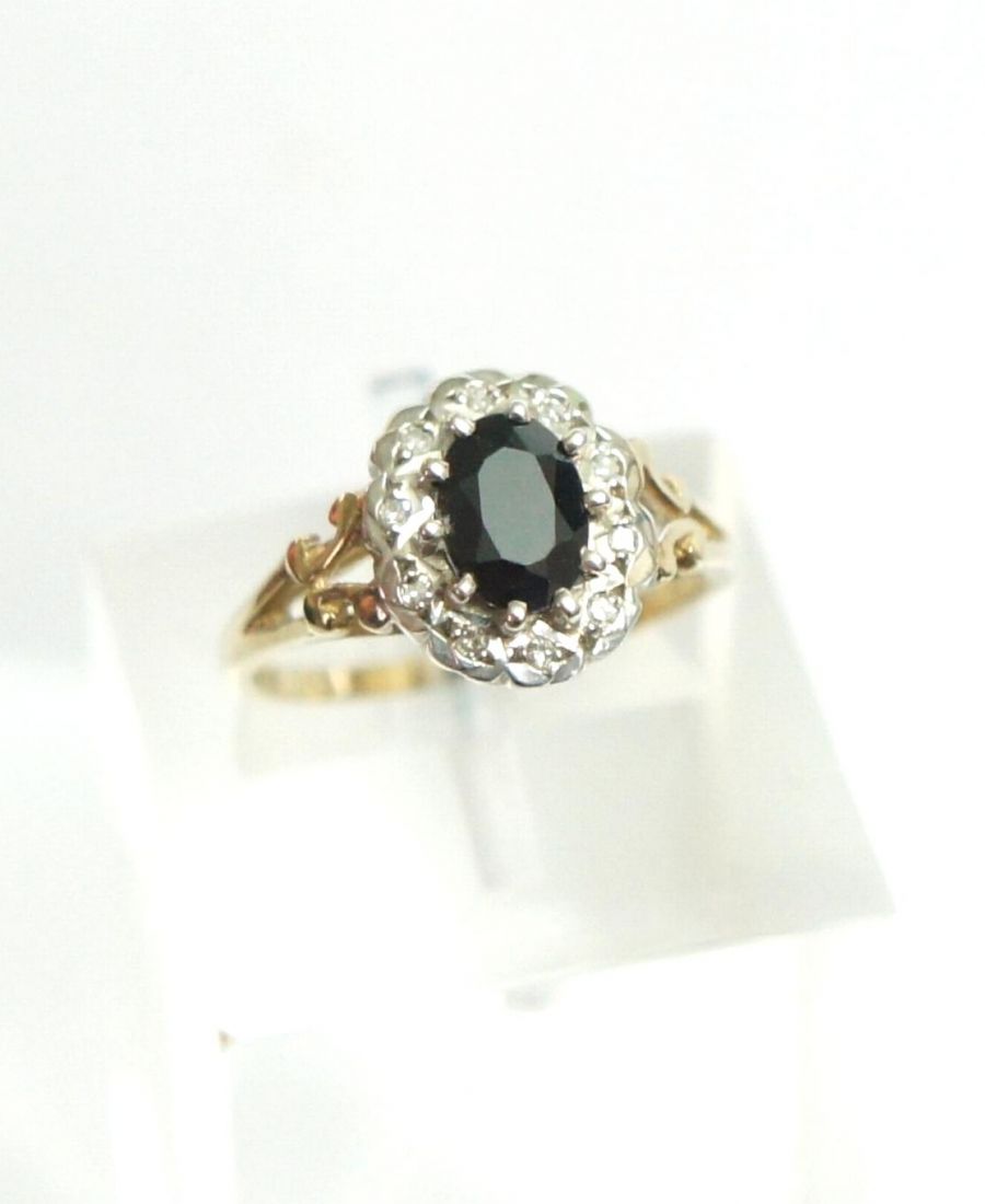 Edler Safir Diamant Damenring aus 375/000 Gelbgold A1448