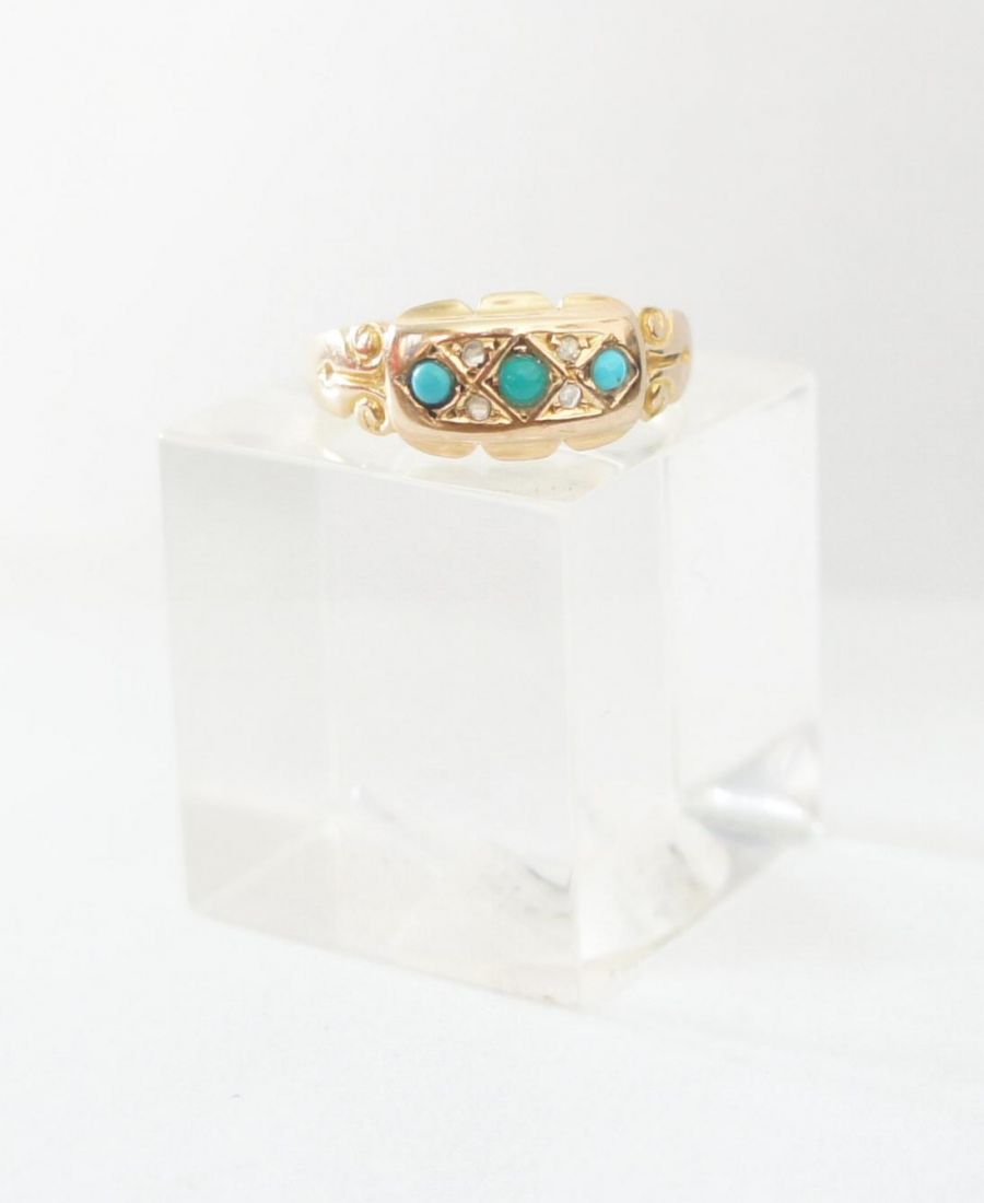 Antiker Türkis Damenring in 625/000 (15ct) Gelbgold A1444