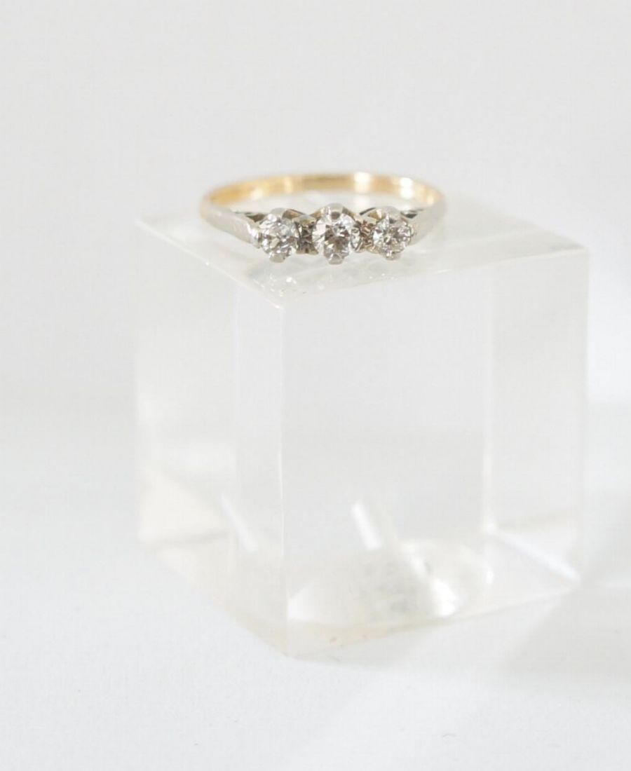 Es wurden 3 Brillanten nebeneinander in Krappen gefasst, zusammen haben sie ca.0,35ct.