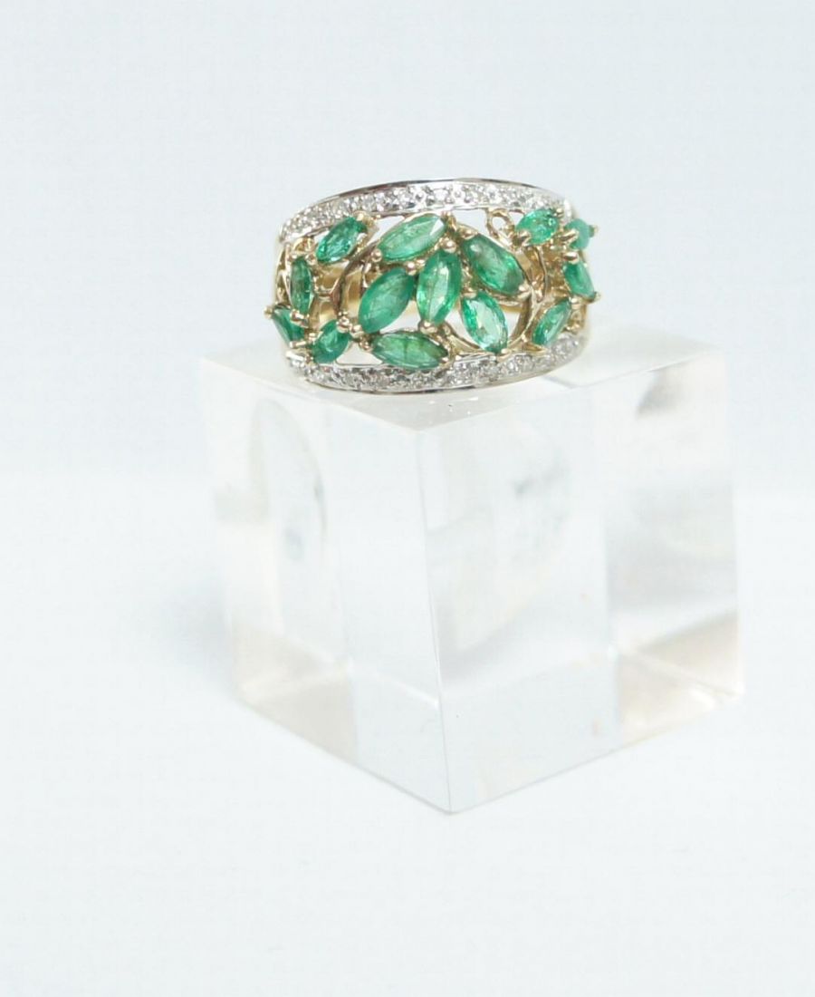 Englischer Smaragdring in 375/000 Gelbgold mit Diamanten A1465