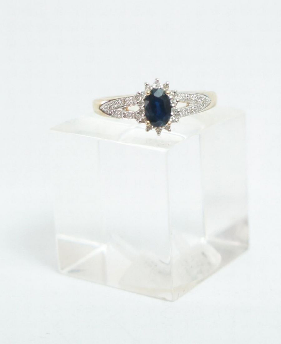 Eleganter englischer Safir Diamantring in 375/000 Gelbgold A1490