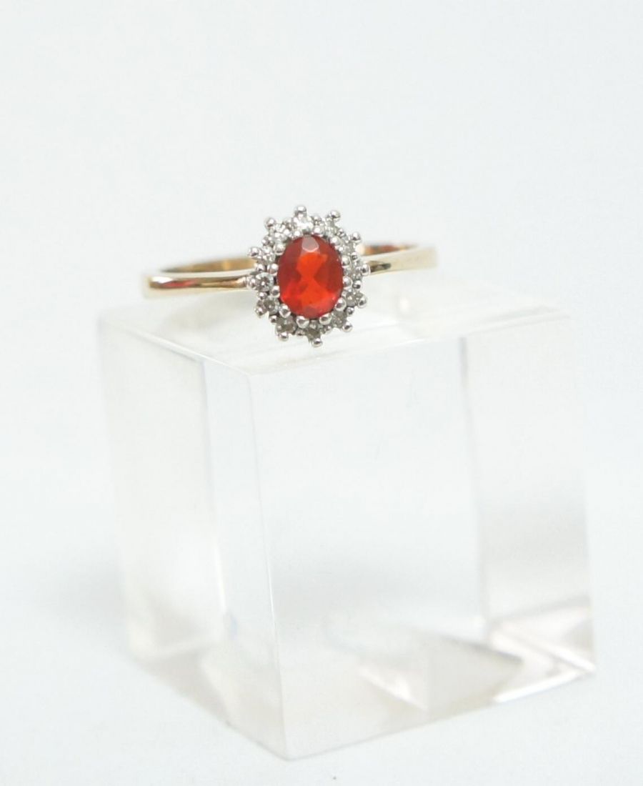 Englischer Feueropal Diamantring in 375/000 Gelbgold A1498