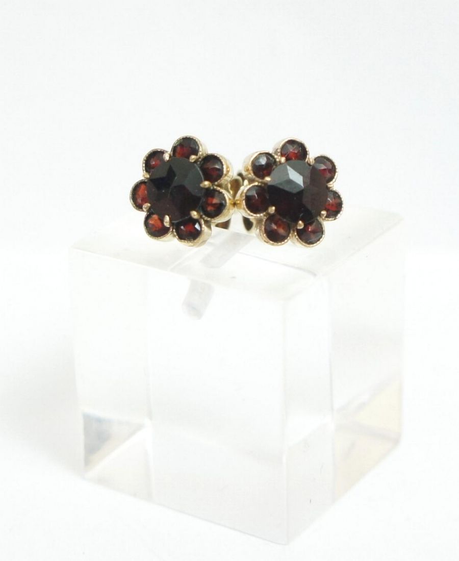 Sehr hübsche böhmische vintage Granat Damenohrstecker aus 333/000 Gelbgold