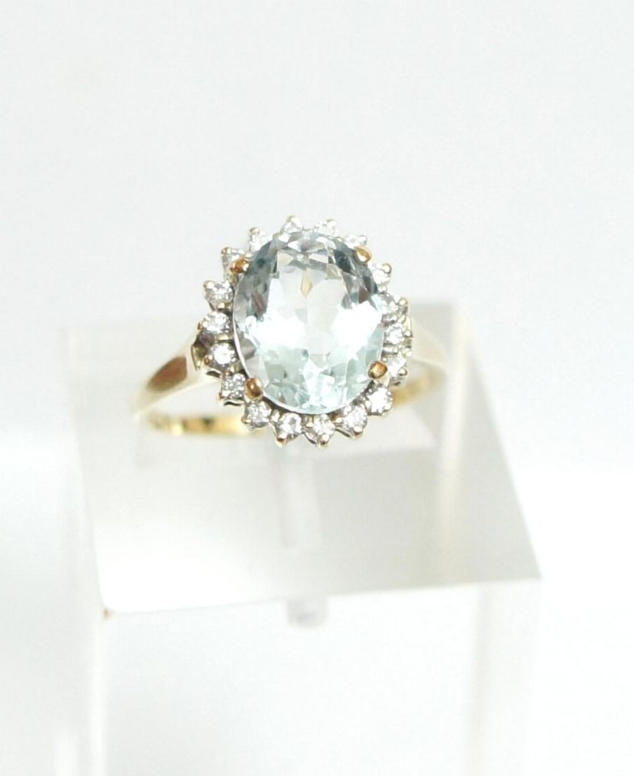 Aquamarin Diamant Damenring aus 375/000 Gelbgold A1541