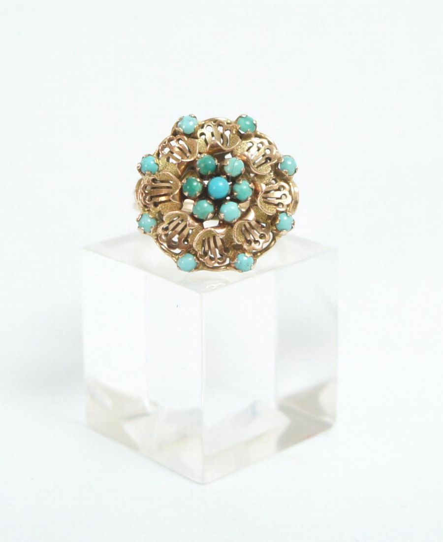 Wunderschöner antiker Türkis Damenring 585/000 Gelbgold A1624