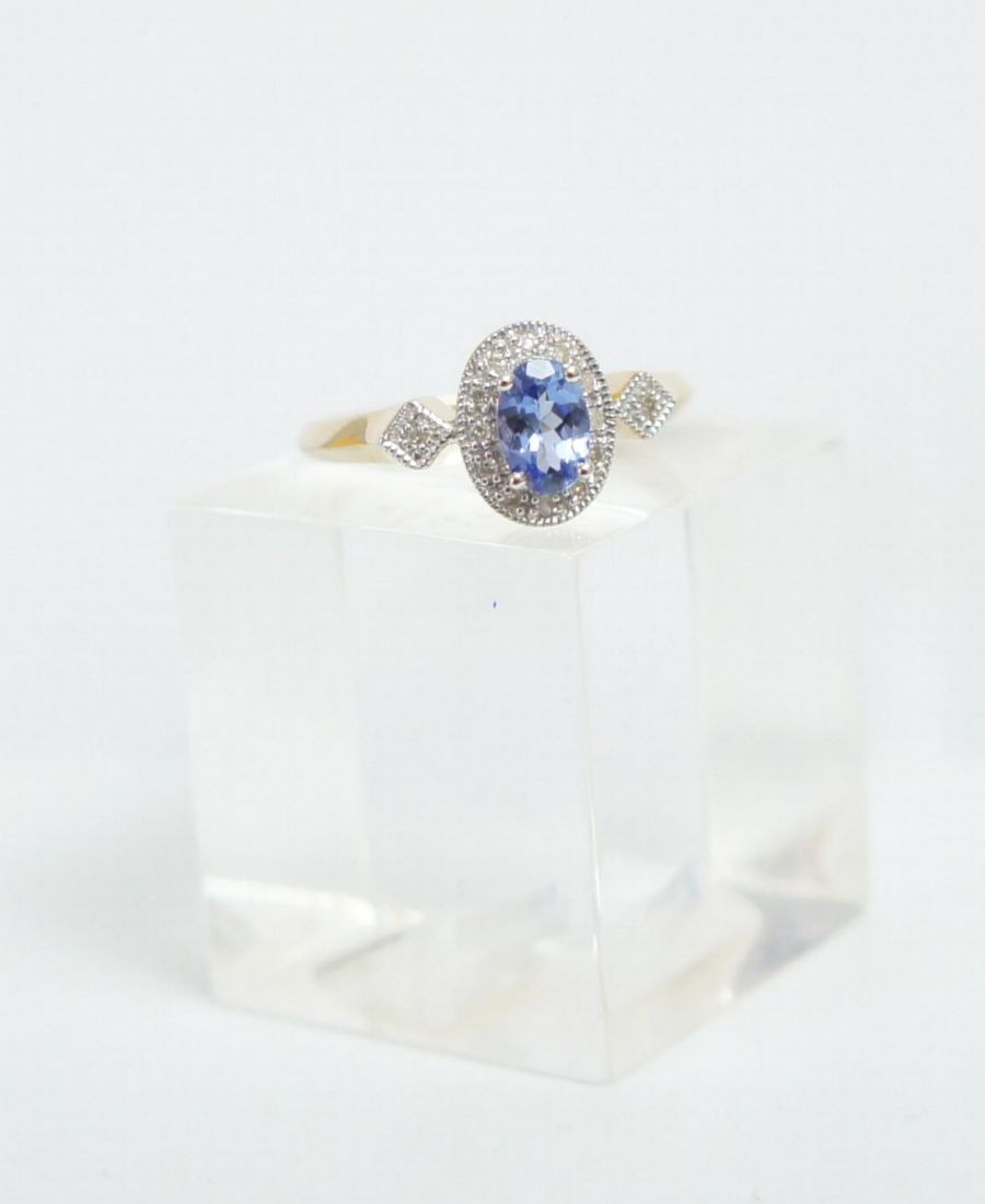 Eleganter englischer Tansanit Diamantring in 375/000 Gelbgold A1