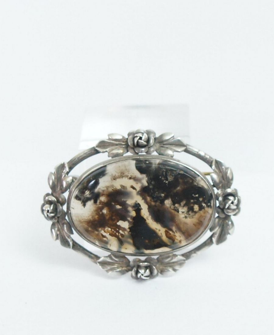 Antike Jugendstil Brosche aus 800/000 Silber mit Achat A1613