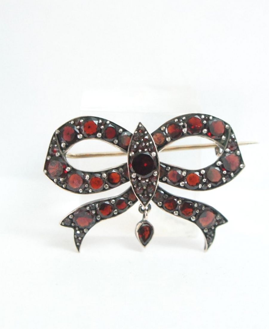 Antike Granatbrosche in Schleifenform aus 585/000 Rotgold A1648