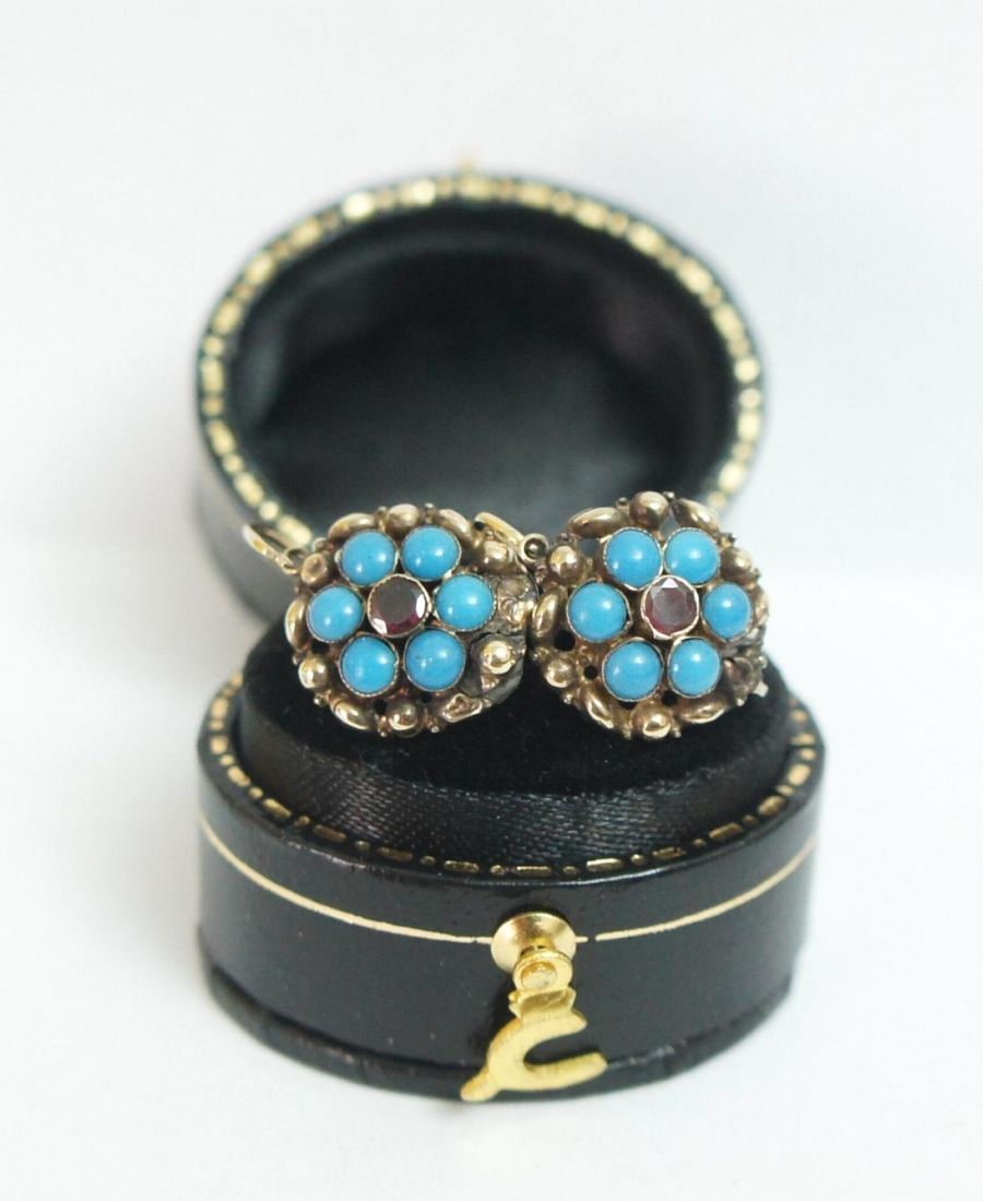 Biedermeier Ohrringe mit Türkis aus 585/000 Gelbgold A1658
