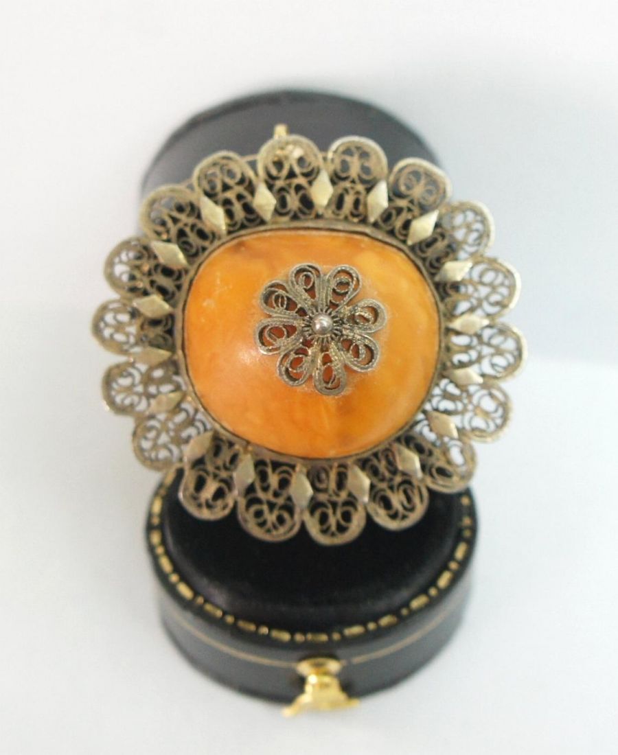 Friesen Brosche /Anhänger 800er Silber mit Butterscotch Bernstei