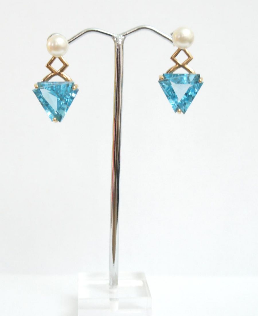 Blautopas Zuchtperlen Vario Ohrstecker 333/000 Gelbgold A1655
